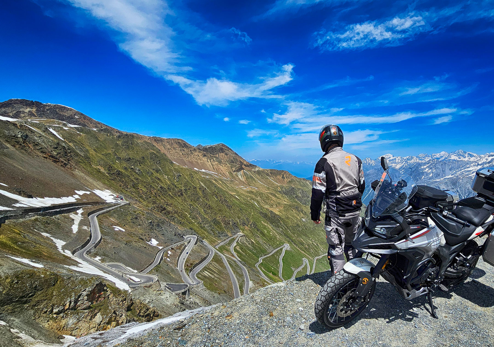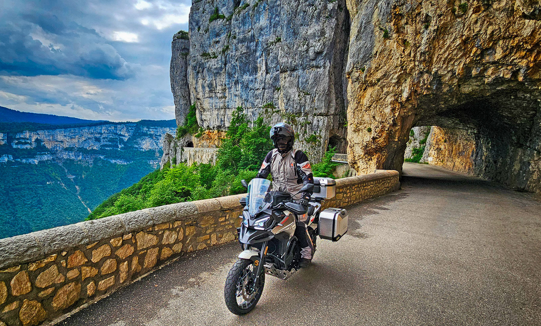 Nuestra T1002VX completó 5.000 kilómetros por los Alpes y demostró su comportamiento en los siempre exigente puertos de montaña de Francia, Suiza, Italia y Austria. Es una montura muy cómoda, con buena protección aerodinámica, notable autonomía (400 kilómetros) y excelente capacidad de carga, que además cuenta con un equipamiento muy práctico (puños y asiento calefactables, control de velocidad, conectividad y mirroring…).