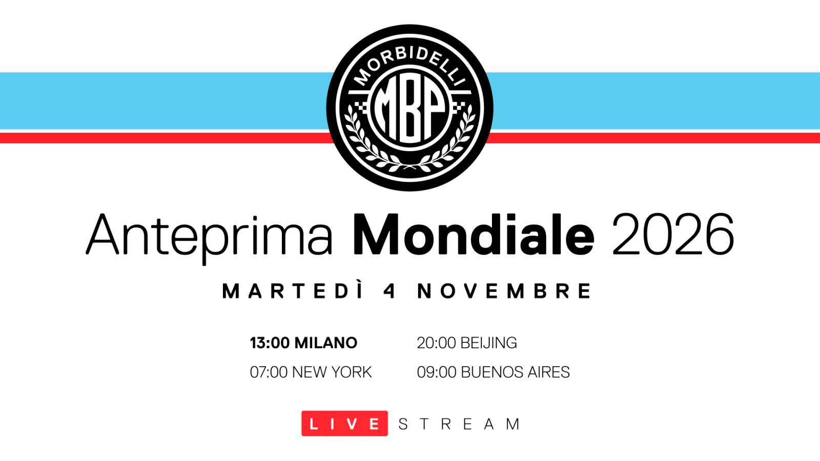 Per chi non potrà partecipare di persona, l’Anteprima Mondiale di Morbidelli sarà trasmessa in diretta su YouTube, con la presentazione di tre nuovi modelli e annunci del marchio. Clicca sui link qui sotto per accedere al live stream e impostare un promemoria per l’evento: